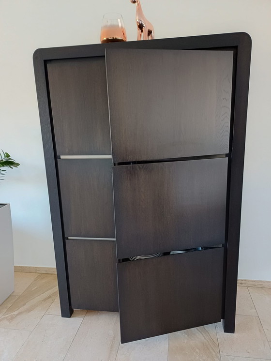 Deze verfijnde woonkamerkast van het merk Metz biedt een perfecte combinatie van stijl en functionaliteit. Het strakke, moderne ontwerp maakt het een ideale aanvulling voor elke eigentijdse woonruimte. De kast is vervaardigd uit hoogwaardig hout en afgewerkt in een elegante zwarte tint, wat een gevoel van luxe en verfijning toevoegt aan uw interieur.