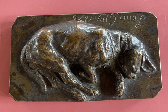 Louis Guy Bronzen Slapende Basset Gesigneerd en gedateerd 1876 B14 x D8,5 x H4 cm
