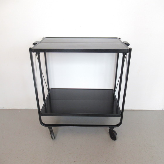 Zwart opvouwbaar dressoir op wielen met twee planken