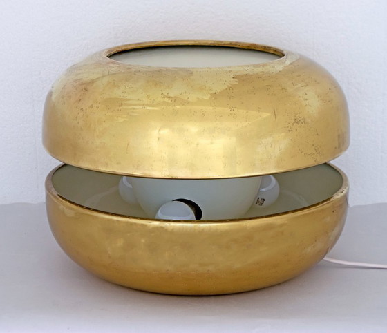 Deze tafellamp, geproduceerd in een beperkte serie, is ontworpen door Luciano Frigerio en geproduceerd door het gelijknamige bedrijf Frigerio Di Desio, Italië, 1974.