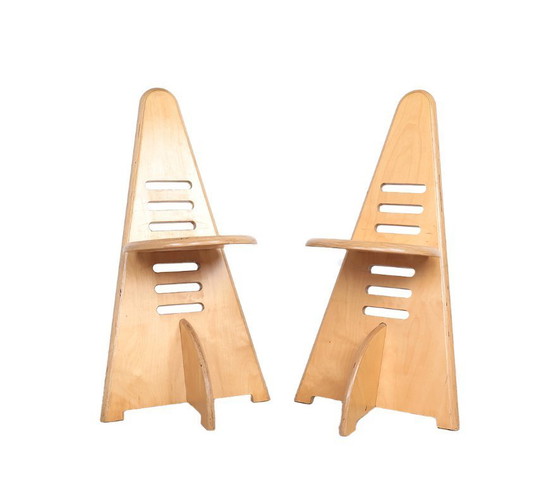 Set van 2 verstelbare minimalistische houten stoelen geproduceerd door Lundia in de jaren 80.