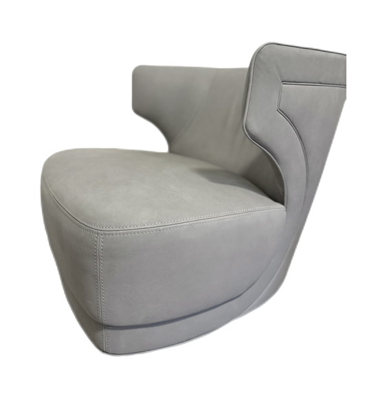Prachtige design leren fauteuil met bekleding van verschillende dichtheden. De gewatteerde naden complementeren de buitenschaal, die versierd is met doorlopend borduurwerk dat het ontwerp benadrukt. Het frame is gemaakt van roestvrij staal en zorgt ervoor dat de fauteuil 360 graden kan draaien. Perfect voor uw slaapkamer: deze fauteuil maakt indruk met zijn elegante grijze kleur en eersteklas afwerking. Met een breedte van 69 cm en een hoogte van 83 cm biedt hij u heerlijke momenten van ontspanning en is hij een blikvanger in elke woonkamer. Kies voor elegantie en kwaliteit, die tot uiting komt in elk detail van deze fauteuil.