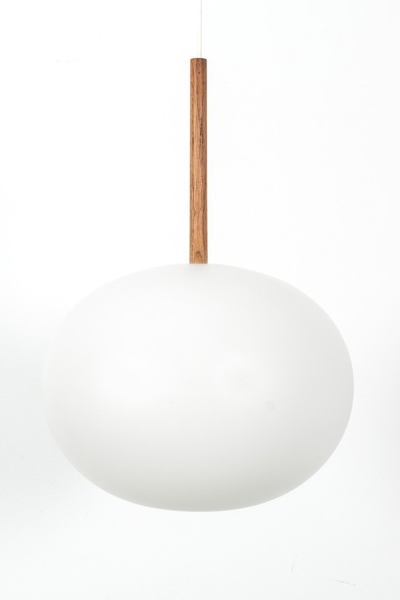 Luxus hanglamp model 552 ontworpen door Uno & Östen Kristiansson. Deze ogenschijnlijk eenvoudige lamp van mat glas heeft echt Klasse met een hoofdletter K. Dit komt door de subtiele vorm van de lamp en het gebruikte materiaal.In een goede vintage staat.