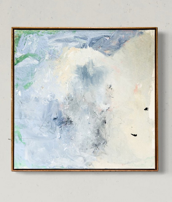 Gemengde technieken op onbewerkt canvas, in een handgemaakte houten lijst