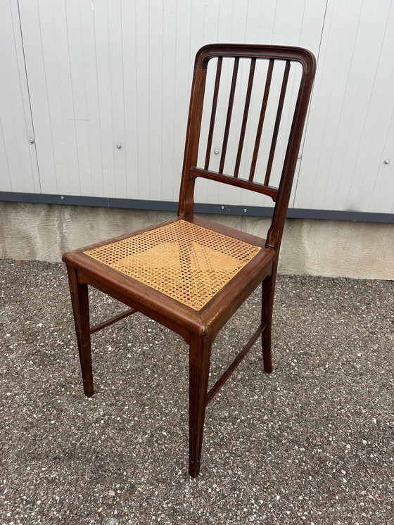 mahoniehouten stoel met rieten zitting uit de jaren 1900