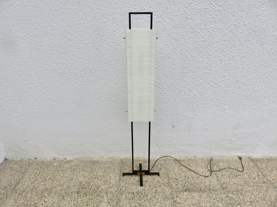 Een prachtige vloerlamp uit de jaren 60, modernistisch, minimalistisch, "maison Arlus" editie Frankrijk. De structuur is van zwart gelakt metaal, de lichtverspreider van perspex, cabochons van verchroomd messing en verguld messing. De staat is uitstekend, bijna nieuw, wat verrassend is voor een stuk van 70 jaar oud. Geen oververhitting of vlekken op het perspex. 4 B22 bajonetaansluitingen. Een zeer zeldzaam item, vooral in deze staat. Hoogte 124cm. Breedte 30cm. Diepte 25cm. De bijpassende wandlampen zijn te koop in een van mijn andere advertenties (zie de laatste 2 foto's).