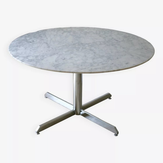 Marmeren en stalen tafel. Frankrijk, circa 1970. Vaak toegeschreven aan Florence Knoll / Roche Bobois. In zeer goede staat. Slijtage in overeenstemming met de leeftijd. Eén onzichtbare kras.