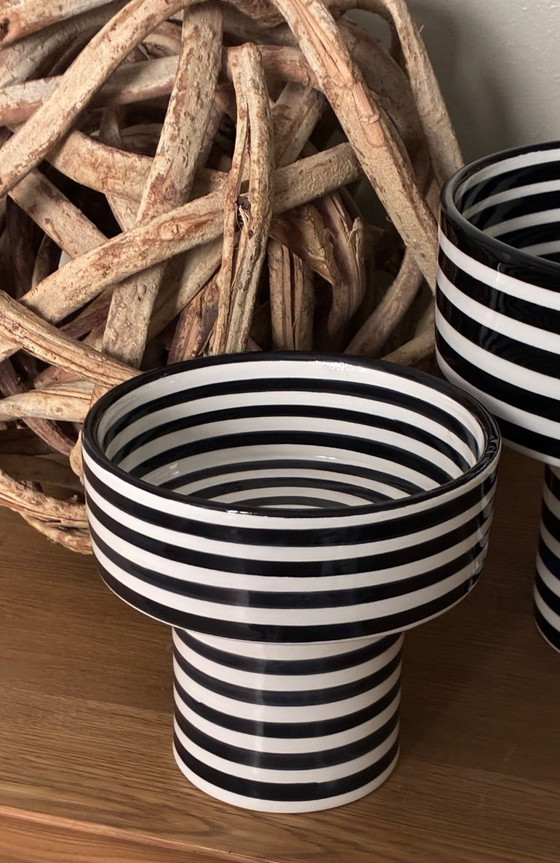 Decoratieve schaal of vaas, naar keuze… zwart-witte strepen.