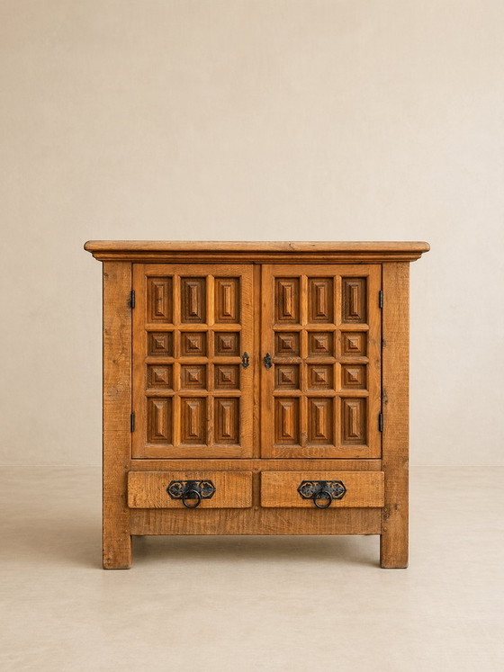 Massief eikenhouten kast – Spaans brutalistisch design, jaren 60