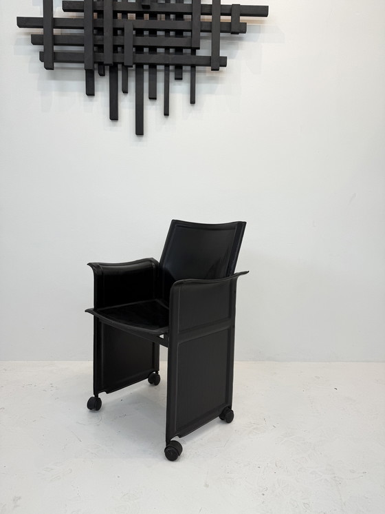 Ervaar het toppunt van Italiaans design met de Mateo Grassi stoel van Tito Agnoli. Deze stoel, bekleed met luxueus zwart tuigleer, combineert elegantie met duurzaamheid en is daardoor perfect voor moderne interieurs. De strakke lijnen en verfijnde uitstraling zorgen ervoor dat de stoel naadloos past in elk interieur en zowel comfort als stijl biedt. Hij is ontworpen door de gerenommeerde Tito Agnoli en toont het toppunt van Italiaans vakmanschap en innovatie. Het hoogwaardige leer belooft een lange levensduur en tijdloze aantrekkingskracht, waardoor het een veelzijdige aanvulling is op je interieur.