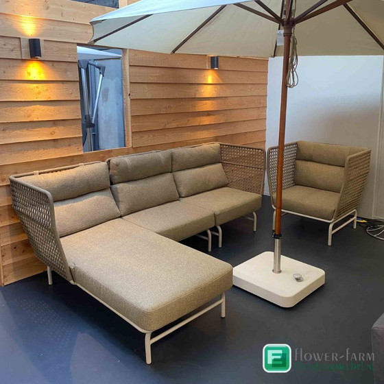 Breng stijl en comfort naar je buitenruimte met de JANE loungeset van Max & Luuk. De loungeset heeft een warme retro-uitstraling en is uitgevoerd in elegant Camel rope, gecombineerd met een stevig aluminium frame en comfortabele kussens in de kleur Safari.