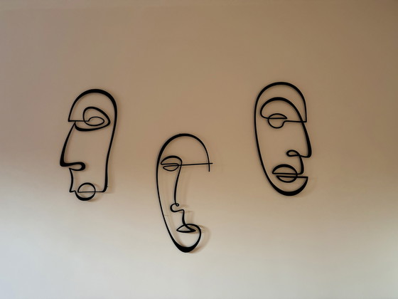 Stijlvolle design wanddecoratie van metaal. Uniek ontwerp met drie hoofden (ook leuk boven elkaar te hangen). Heel gemakkelijk te bevestigen.
