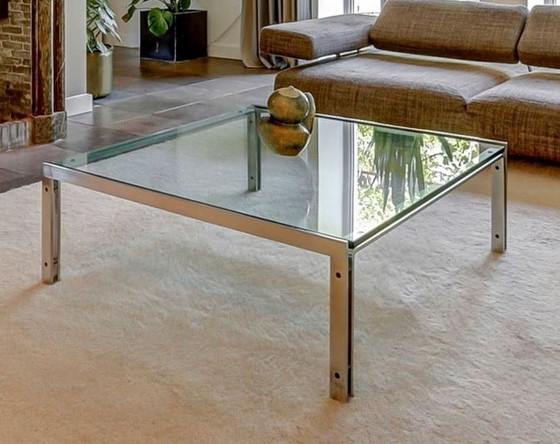 De Metaform salontafel is uniek door z’n fraaie, strak vormgegeven modellering. Het tafelblad is gemaakt van een dikke glasplaat van 19 mm en rust bovenop een RVS onderstel van 30 x 8 mm.