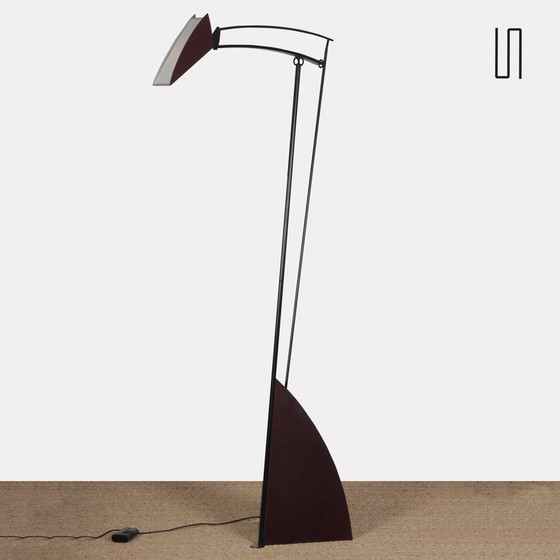 Deze zwarte metalen vloerlamp dateert uit de jaren 1990. De kanteling is verstelbaar. Deze lamp is in goede originele staat.