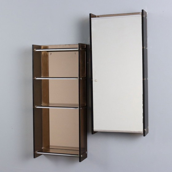 Metalen wandkasten, één met planken en de andere met een spiegeldeur. Code: MOMOMO0300914