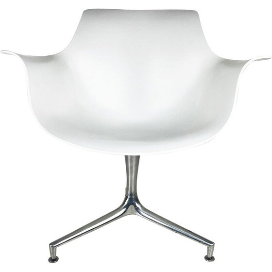 De kuip van de stoel is gemaakt van PP versterkt glasvezel en bekleed met een gladde witte kleur met een aluminium onderstel met drie sterren.
