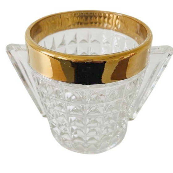 Schitterende mid-century ijsemmer van zwaar geslepen kristal met messing detail.