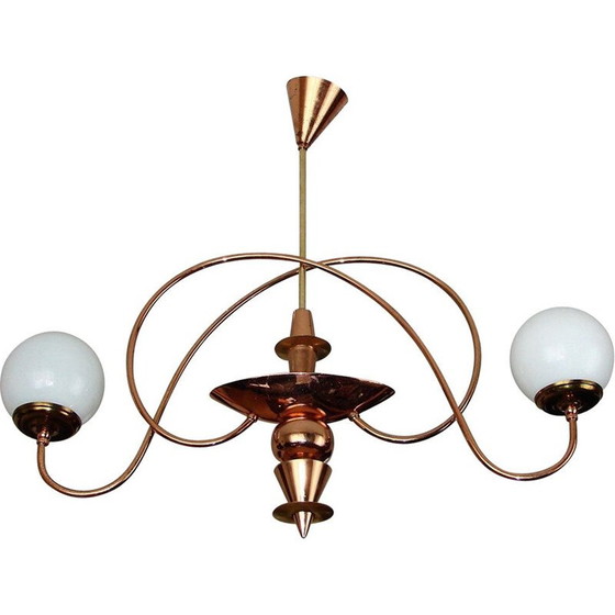 Mid Century kroonluchter, jaren 1960 Gemaakt van messing, staal, messing en glas. Kroonluchter vereist 2 E14 lampen