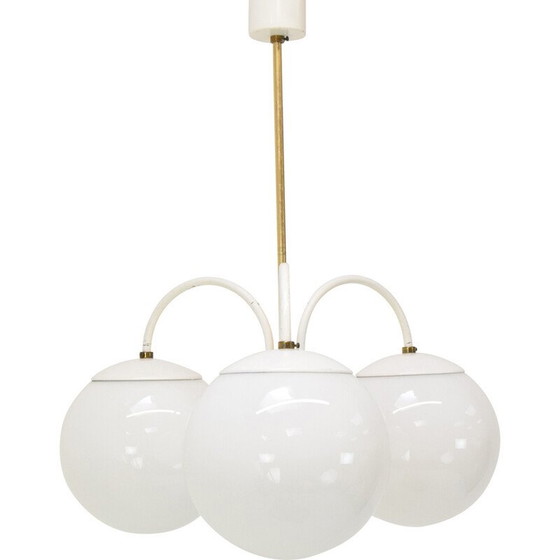 Mid century kroonluchter van metaal en messing, Tsjecho-Slowakije 1960