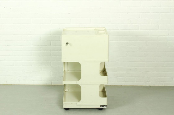 Italiaanse werktafel of trolley van kunststof/glasvezel. Ontworpen door Giovanni Pelis voor Stile Neolt, jaren 70. Drie lades en veel opbergruimte, met sleutel. Goede vintage staat.