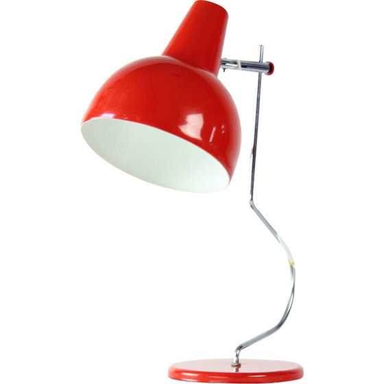 Prachtige iconische tafellamp van een van de grote Tsjechische ontwerpers Josef Hurka. De lamp is geproduceerd door Lidokov company als Lidokov L193 model, origineel label nog aan de lamp. Geproduceerd in rode kleur staande op een sterke roestvrijstalen constructie. De rode onderdelen zijn allemaal van metaal. Werkt op één gloeilamp en geeft een prachtig licht. Zeer goede staat met slechts kleine gebruikssporen. Geweldig licht met tijdloos design!