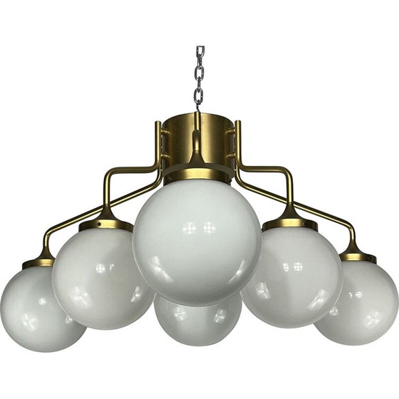 Mid Century messing en melkglas hanglamp van Reggiani, Italië 1970