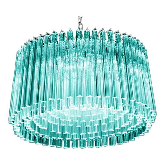 Mid-Century Modern Italiaanse lichtblauwe Triedro "Concava" kroonluchter