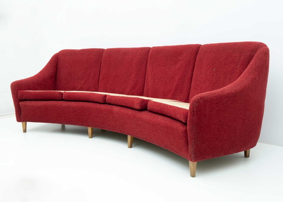 Mid Century Moderne Italiaanse fluwelen vierzits gebogen bank, 1950