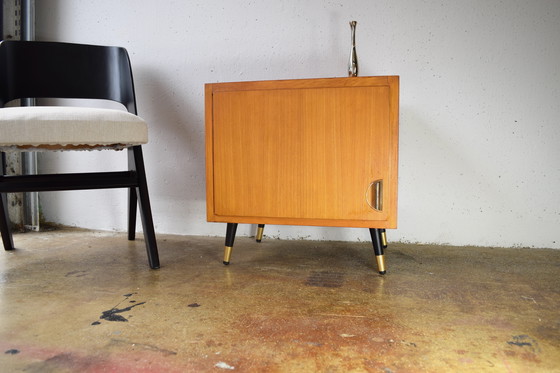Dit is een kleine vintage ladekast uit de jaren 1950.