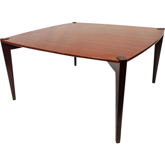 Deze mid-century salontafel werd in de jaren 1950 in Zweden gemaakt door Nordiska Kompaniet NK. De tafel heeft zwartgelakte poten en een teakhouten blad.