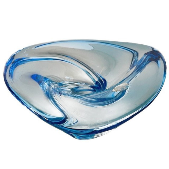 Mid-century XL Val Saint Lambert model Patelle serie Torsade schaal in blauw en helder glas, ontworpen door René Delvenne in de jaren 50.