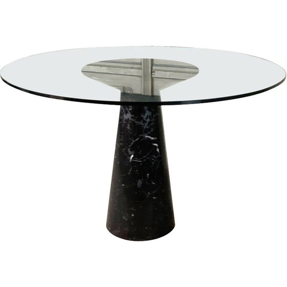 Mid-century zwart marmeren poten en glazen blad eettafel door Angelo Mangiarotti, Italië 1970