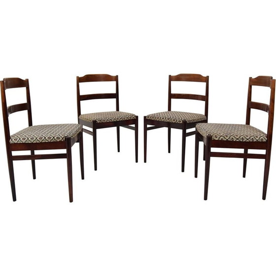 Mid-eeuwse set van 4 stoelen van stof en hout Ton, Tsjecho-Slowakije 1970
