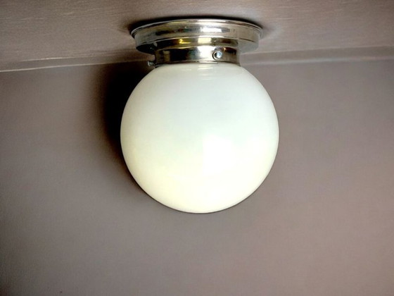 Minimalistische plafondlamp gemaakt van wit opaline glas en voorzien van een aluminium armatuur. Werkt met E14 gloeilamp, we raden aan LED te gebruiken.