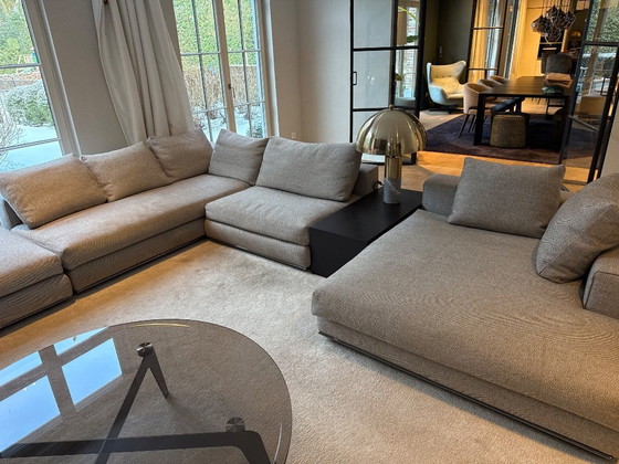 Mooie Minotti Hamilton bank, in zeer goede staat. Donkeren massieve donkere blok wat mooi tussen de bankdelen past is ook ter overname.