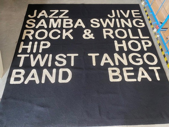 Minotti Jazz vloerkleed - 300x300 Jazz kleed met verschillende muziekteksten erop. Kleed is zwart met witte letters. Afmeting van het kleed is 300 x 300 cm.Jazz kleed met verschillende muziekteksten erop. Kleed is zwart met witte letters. Afmeting van het kleed is 300 x 300 cm.