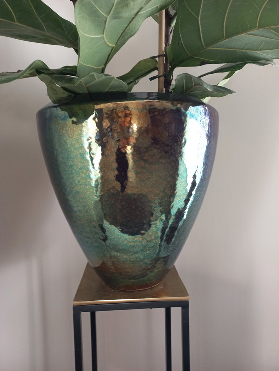 Prachtige Monach Vaas van 43 cm hoog en een diameter van 40 cm. Kleur is groentinten met parelmoer, afhankelijk van het licht verandert de kleurssamenstelling. Een parel in huis!