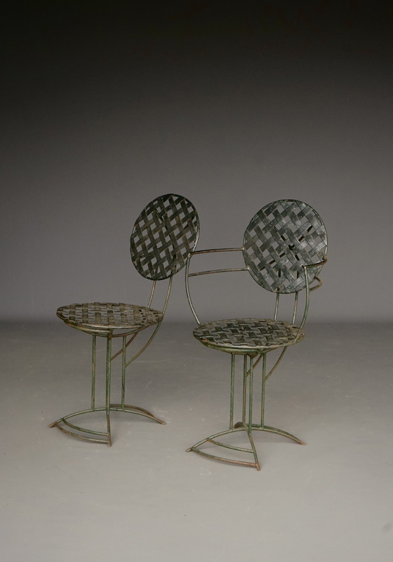 Modernistische metalen tuinstoelen. 1960s. Set van 2