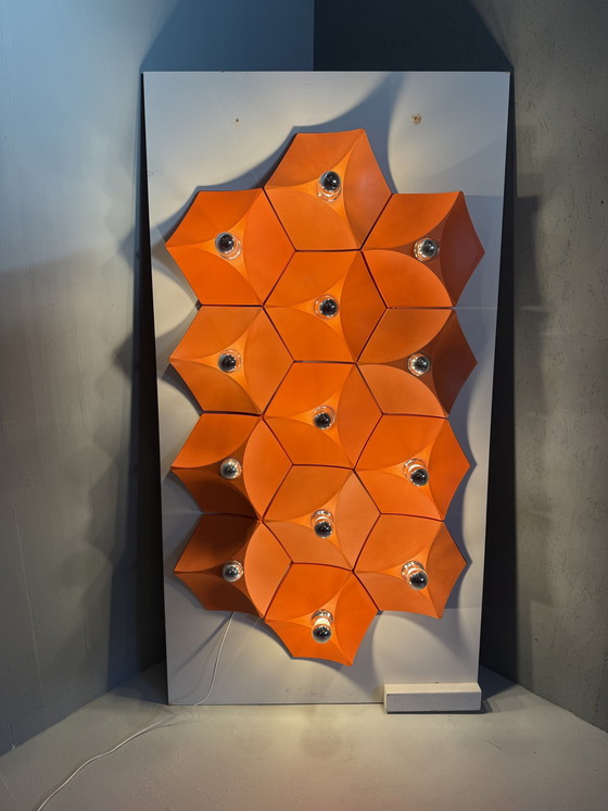 3D lichtkunst uit de jaren zeventig. Volledig origineel en gemerkt aan de achterkant. De lampen zijn geschakeld op deze foto.