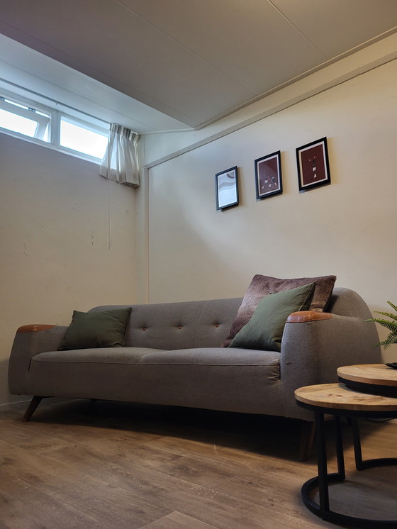 Montèl Designerbank | Grijs Met Leren Accenten | 3-Zits | €350