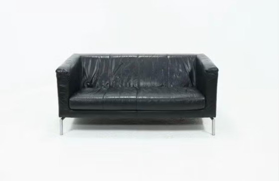 Prachtige Montis Kubik bank, ontworpen door Gerard van den Berg. Deze comfortabele bank is bekleed met zwart leer en staat op slanke metalen poten. Een tijdloos designstuk dat perfect past in een modern interieur. De bank is gebruikt, maar verkeert in goede staat met lichte gebruikssporen die passen bij de leeftijd en het materiaal.