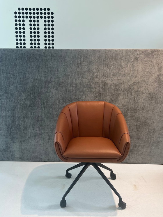 MONTIS model Luna M0137, aluminium draaivoet, mat zwart, wielen zacht, bekleding leer Country brown (L50) h.80 b.60 d.60 cm