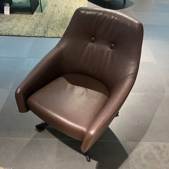De Montis Puk Low draaifauteuil is een 360 graden draaibare fauteuil met knopen in de rugleuning, uitgevoerd in leder Cuba Coffee en voorzien van een eiken carbon voet. De fauteuil heeft een breedte van 75 cm, een diepte van 85 cm en een hoogte van 89 cm, met een zitdiepte van 51 cm en een zithoogte van 44 cm. Dit ontwerp van Simon Pengelly uit 2015 is gemaakt om je te omarmen en biedt zowel thuis als op kantoor een comfortabele zitervaring met een luxueuze uitstraling. De Puk Low combineert comfort met een eigentijdse esthetiek, waarbij de vakkundig uitgevoerde details en het stille silhouet zorgen voor een karaktervolle en tijdloze uitstraling. Het onderstel van deze fauteuil is licht beschadigd.