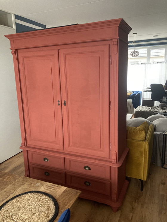 Deze prachtig gerenoveerde kast is een opvallende aanwinst voor elk huis en biedt zowel stijl als functionaliteit. De levendige rode afwerking geeft een gedurfde touch, terwijl het vintage design ervoor zorgt dat de kast tijdloos blijft.