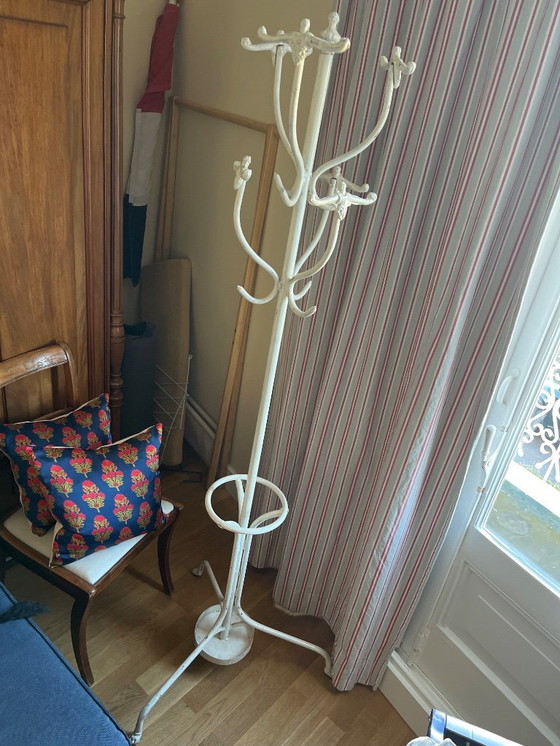 Deze prachtige vintage kapstok, afkomstig uit een ziekenhuis, biedt een charmante en functionele toevoeging aan uw gang of kamer. Met zijn elegante metalen structuur en tijdloze witte afwerking, past hij moeiteloos in diverse interieurstijlen.