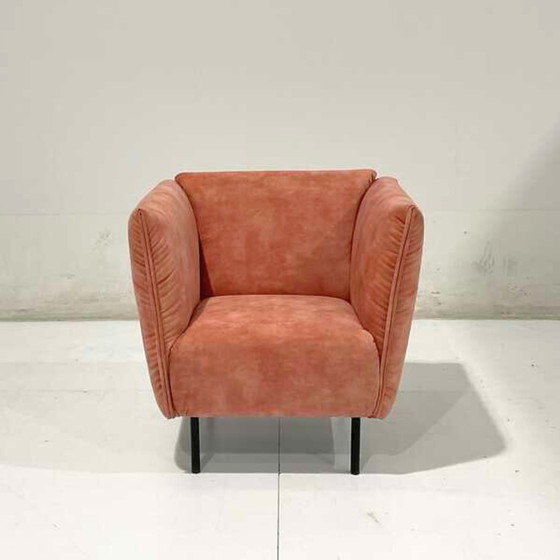 MOOME LOU DESIGN FAUTEUIL - Als nieuw - Afmeting: H 82cm x B 80cm x D 74cm - Comfort: compact én comfortabel - met zachte zit en omhullende armleuningen Beschrijving De LOU chair van Moome is een uitgesproken designstatement in compact formaat. Deze fauteuil combineert strakke lijnen met een zachte, uitnodigende uitstraling. De licht retro geïnspireerde vormgeving geeft elke ruimte net dat beetje extra stijl, zonder te overheersen. De fluweelzachte microvezelstof in een roze kleur contrasteert mooi met het fijne, zwarte onderstel, wat zorgt voor een luchtige, eigentijdse silhouet. Ideaal voor wie houdt van design met een speelse twist. Ergonomie De LOU chair is een comfortabele zitoplossing voor kleine én grote ruimtes. Dankzij de hoge armleuningen en ergonomische rugsteun biedt de fauteuil verrassend veel comfort, perfect voor een leeshoekje, als accentzetel of in een creatieve werkplek. Gebruikssporen en/of schades Deze LOU verkeert in perfecte staat, zonder zichtbare gebruikssporen, vlekken of slijtage. De bekleding en het onderstel zijn volledig intact. Klaar om meteen karakter toe te voegen aan je interieur!