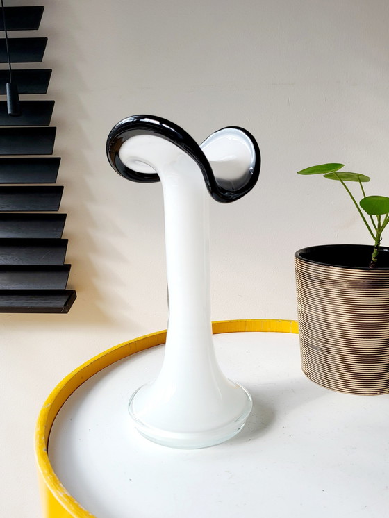 Murano Vintage Vaas, Mid Century, Zwart En Wit, Abstract Model, Italy