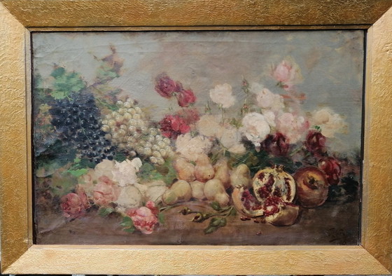 Giuseppe Alberto Coco '' Natura Morta con frutta e fiori '' olieverf op doek 64 x 96 cm met lijst 73 x 104 cm Giuseppe Alberto Coco Chieta 1879- Naples 1963 Gemaakt 1910-1920 Gesigneerd G A Coco. Schilder van stillevens en landschappen stadsgezichten.