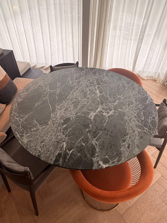 Deze prachtige ronde eettafel van natuursteen, bekend als Alpe Verdi, biedt een elegante en moderne uitstraling die perfect past in elke eetkamer. Met een royale diameter van 160 cm is deze tafel ideaal voor het comfortabel plaatsen van 8 tot 10 personen, waardoor het een uitstekende keuze is voor zowel intieme diners als grotere bijeenkomsten.