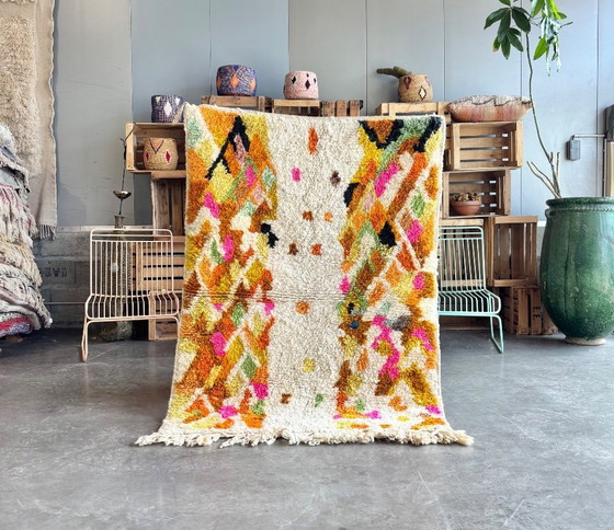 Ontdek de tijdloze elegantie van dit Boujad Marokkaanse Berber tapijt, een gloednieuw exemplaar dat een vleugje kleur en warmte aan uw huis zal toevoegen. Dit zorgvuldig handgeweven tapijt belichaamt traditioneel Marokkaans vakmanschap en biedt tegelijkertijd een levendige, moderne uitstraling.